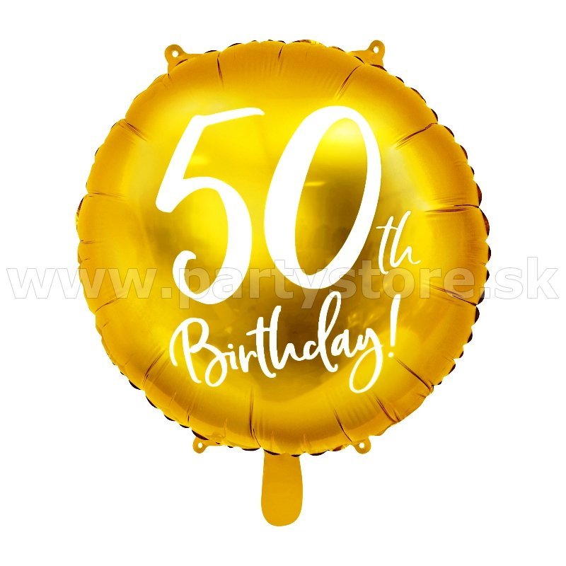 - 1 kus zlatý fóliový balón v tvare kruhu s bielym nápisom 50. narodeniny
