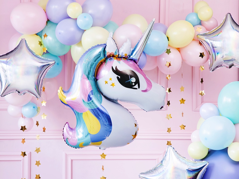 Značkový fóliový balón v tvare krásneho bieleho jednorožca s dúhovou hrivou. Jeho atraktívny tvar s elegantným designom z neho robia vynikajúcu dekoráciu na narodeninovú oslavu, rozprávkovú párty alebo inú špeciálnu príležitosť.
