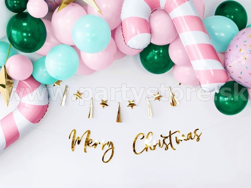 Značkový fóliový balón v tvare cukrovej vianočnej salónky. Jeho atraktívny tvar s elegantným jednoduchým designom z neho robia vynikajúcu dekoráciu na vianočnú besiedku alebo firemnú X-mas párty.