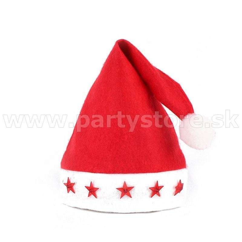 Svietiaca klasická vianočná čiapka so svietiacimi červenými hviezdičkami na čele je skvelým doplnkom na vianočnú Xmas párty. Na bielom lemovaní čiapky v oblasti čela je vsadených 5 vysoko kvalitných LED diód v plastových červených päťcipích hviezdičkách, ktoré osvetľujú predný diel čiapky. Mini spínačom, ktorý je umiestnený na čiapke pri hviezdičkách si zvolíte jeden režim svietenia (blikajúce červene hviezdičky tzv. bežiace svetlo).