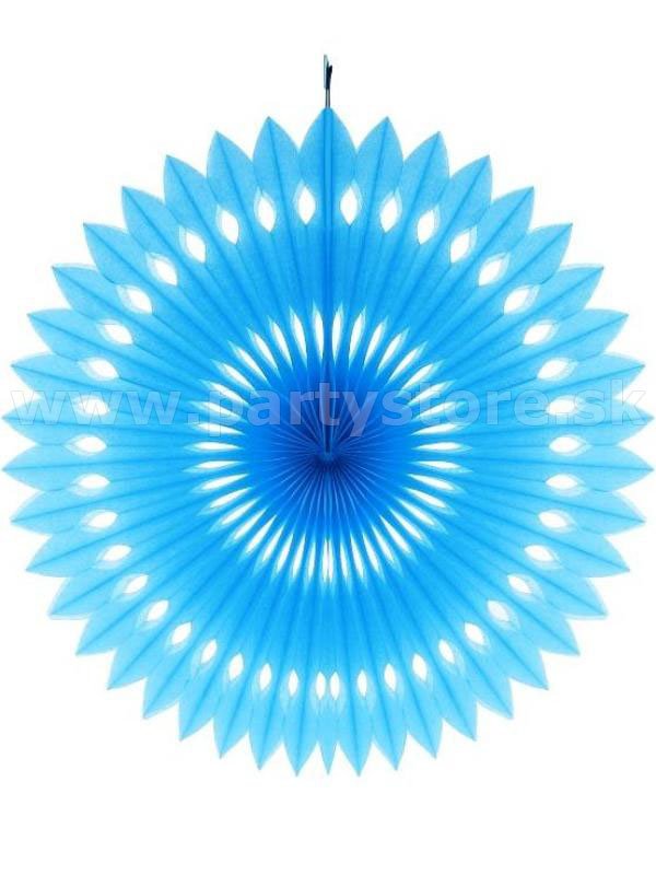 Jednoduchá, efektná dekorácia na zavesenie. Jednofarebná papierová dekorácia na zavesenie je vhodná hlavne na výzdobu interiérov. Rozmery - priemer 40 cm. Farba - belasá. Materiál - jemný jednofarebný ultra ľahký papier.