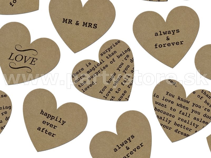 Konfety - SRDCIA - SVADOBNÉ - papier Kraft s potlačou, 3 gramov
