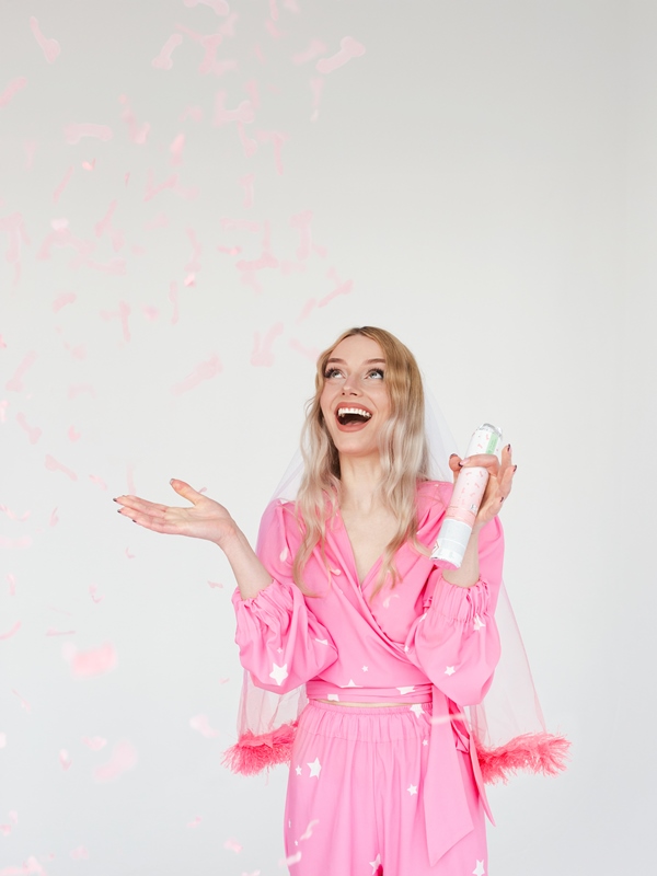 - 1 kus konfetové delo so svetloružovými papierovými penismi