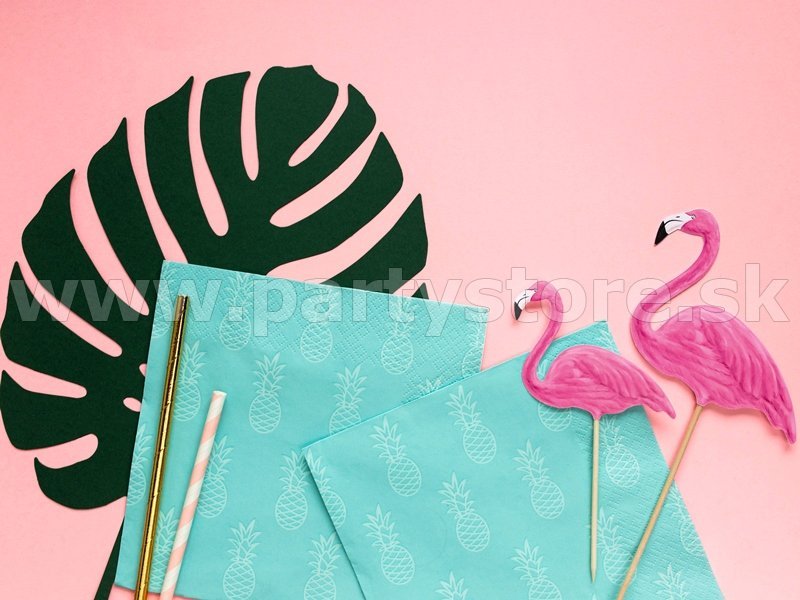 Papierové obrúsky s decentným vzorom tropických ananásov na svetlo tyrkysovom podklade. Vytvoríte nimi spolu s inými dekoráciami z našej ponuky autentickú atmosféru tropického ostrova. Papierové jednorázové 3 - vrstvové obrúsky sú skvelým doplnkom stolovania na párty v havajskom štýle, safari párty a letné plážové párty.