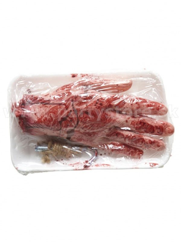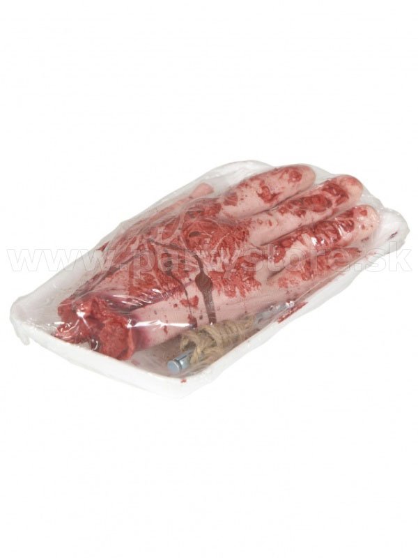 - Odtrhnutá ruka na polystyrénovej tácke je karnevalovou party rekvizitou pre dospelých a dospievajúcich.
